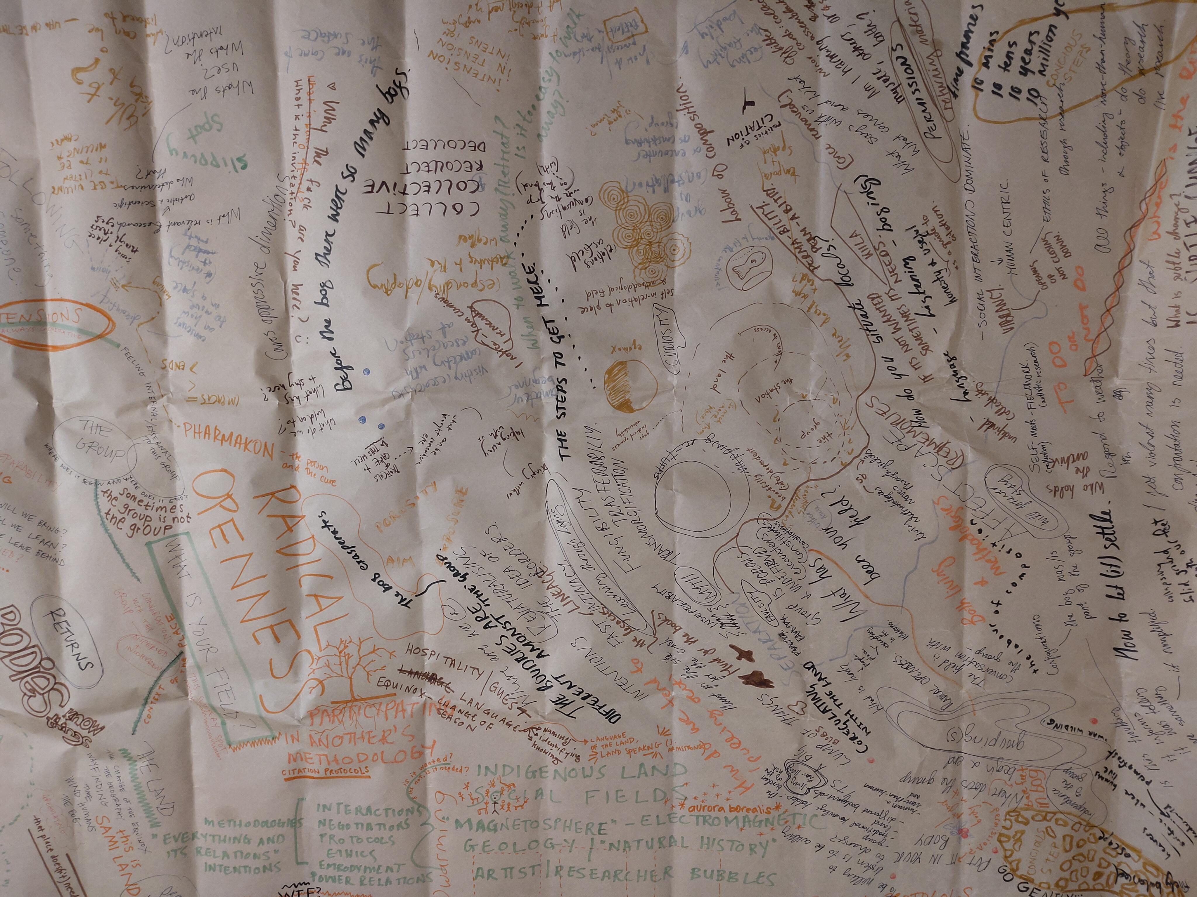 language- listening - bog(ing) we hum in the bog, a nearby permafrost site we are taking samples to make sense of the soil through paper flowers winter is coming, up north the equinox requires us to think of the planet the northern lights bring out the unafraid fox we keep reading to each other in an intimate conspiracy trying to hold together the unevenness, the generations and cracks in our pasts a form of dissonance training to overcome the incapacitation that has befallen us ~~~~~ [2026]